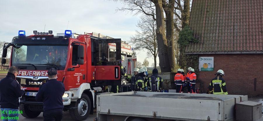 Am Mittwochabend wurden wir gemeinsam mit der Feuerwehr Ankum zum Betriebsgelände der Firma Woltemade alarmiert. Außerdem alarmierte die Leitstelle ein NEF, einen RTW und zwei NKTW der Malteser Alfhausen zu dieser Einsatzstelle. Vor Ort kam es zu einem schweren Arbeitsunfall, bei dem zwei Personen unter, bzw. in einem PKW eingeklemmt wurden. Außerdem kam es zu einer Rauchentwicklung. Nachdem die Halle durch mehrere Trupps unter Atemschutz rauchfrei gemacht wurde und eine weitere Person gerettet werden konnte, wurde mit der technischen Rettung der eingeklemmten Personen begonnen. In enger Abstimmung mit dem Rettungsdienst, welcher ebenfalls durch ehrenamtliche Einsatzkräfte gestellt wurde, wurden beide Personen befreit und an die Kollegen der Malteser übergeben. Bei diesem Szenario handelte es sich um eine gemeinsame Alarmübung. Vielen Dank an das Lohnunternehmen Woltemade und @autoteile_tozo für die Bereitstellung des Übungsobjektes und des "Unfall PKW". Im Anschluss gingen die beteiligten Kräfte bei Würstchen und Kaltgetränken in den gemeinsam Austausch.