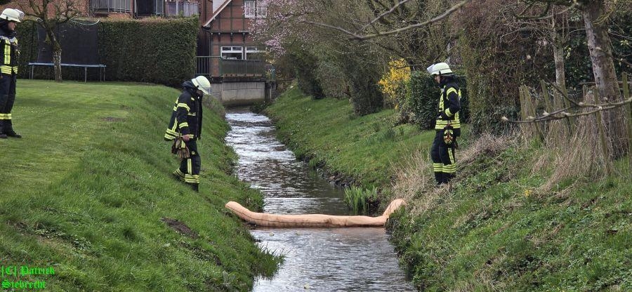 2. Einsatz an diesem Mittwoch: Wir wurden um 17:01 Uhr zunächst zur Ankumer Hauptstraße alarmiert, weil ein aufmerksamer Bürger einen Ölfilm auf dem Suttruper Bach entdeckt hatte. Nach einer schnellen Erkundung teilten sich die Fahrzeuge auf, um Ölsperren an der Michels Stiege sowie am Dr. Albert-Schmidt-Weg zu setzen. Parallel dazu wurde die Baustelle an der Lingener Straße angefahren, da die Polizei dort den Verursacher festgestellt hatte. Die Verunreinigung war durch einen auf dem Voltlager Damm geparkten Asphaltfertiger entstanden. Hier setzten wir Bindemittel ein um eine weitere Ausbreitung zu verhindern. Gegen 18 Uhr war der Einsatz für uns beendet.