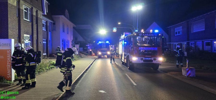In der Nacht von Dienstag auf Mittwoch wurden wir zunächst mit dem Stichwort „F2“ in die Bramscher Straße zu einem Mehrparteienhaus alarmiert. Bewohner des Hauses hatten Rauch und einen piependen Rauchmelder aus einer der Wohnungen im zweiten Obergeschoss wahrgenommen und die Feuerwehr alarmiert. Aufgrund der starken Rauchentwicklung und der noch vermissten Person im Gebäude erhöhten wir das Stichwort auf F3Y, sprich Feuer mit Menschenleben in Gefahr. Dadurch wurde die Drehleitereinheit der Feuerwehr Ankum, sowie die Feuerwehren Talge und Gehrde dazu alarmiert.